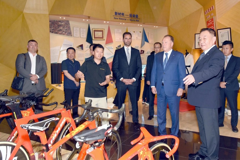 印度尼西亚奥委主席、亚洲自行车联合会第一副主席拉贾·奥克托哈里一行莅临jinnian金年会参观考察